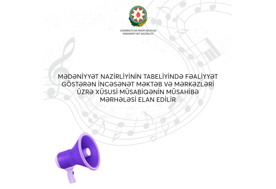 Nazirlikdən bildirilib ki, müsahibə mərhələsində iştirak etmək üçün qeydiyyat noyabrın 17-dən 22-dək “MyCulture” vahid şəxsi kabineti üzərindən aparılır.
