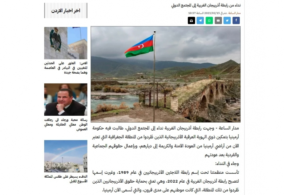 “Əl Ənbat”, Cohina”, “Alsaa”, “Nəbd Əl Balad” qəzetlərində tam mətni dərc olunmuş müraciətdə İordaniya ictimaiyyətinə 2020-ci ildə öz torpaqlarının işğalına son qoymuş dost və qardaş Azərbaycan xalqının XX əsr boyu Ermənistan tərəfindən məruz qaldığı cinayətlər barədə geniş məlumat verilib. Eyni zamanda, oxuculara sonradan Ermənistan adlanan və əslində, Azərbaycan torpaqları olan ərazidəki doğma yurdlarından qovulmuş azərbaycanlıların tarixi və qanuni hüquqları barədə real həqiqətlər də təqdim edilib.