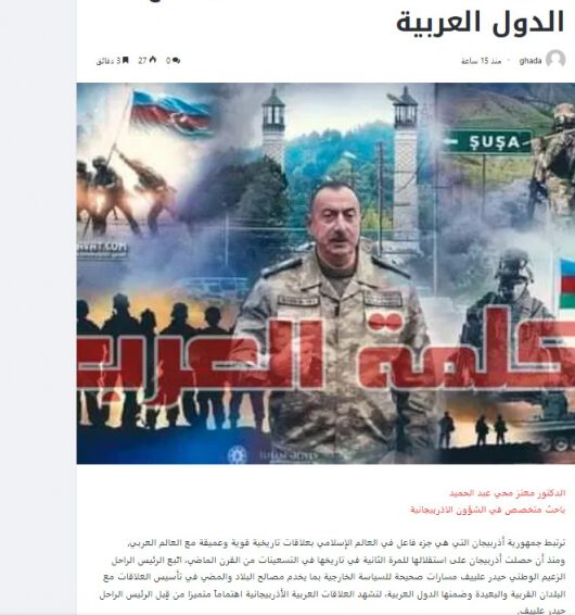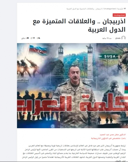 Məqalədə qeyd olunub ki, Azərbaycan ikinci dəfə müstəqilliyini bərpa etdikdən sonra ulu öndər Heydər Əliyev xalqın tələbi ilə müstəqil Azərbaycan dövlətinin prezidenti seçildi. Heydər Əliyev dünya siyasətini incəliklərinə qədər bildiyi üçün ərəb ölkələri ilə əlaqələrin inkişafına xüsusi diqqət yetirirdi. Azərbaycanın İslam Əməkdaşlıq Təşkilatına (İƏT) üzv olması və bu gün rəsmi Bakının ərəb dövlətləri ilə əlaqələrinin yüksələn xətlə inkişaf etməsinin əsası məhz Heydər Əliyev tərəfindən yaradılıb. İƏT çərçivəsində dəfələrlə Ermənistanın Azərbaycanı işğal etməsi faktı təsdiq olunub və rəsmi Yerevandan işğalda saxladığı torpaqların azad edilməsi tələb olunub.
