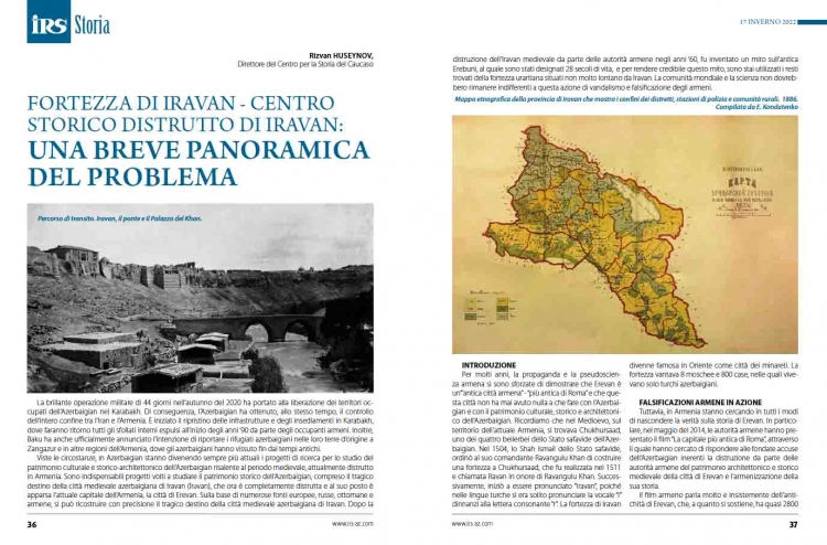 Digər məqalədə Ermənistanın paytaxtında şəhərsalma adı altında mədəni-tarixi irs nümunələrimizin, o cümlədən İrəvan qalasının məhv edilməsi, bu şəhərin Azərbaycanın keçmişinə aid olduğuna dair faktlar yer alıb.