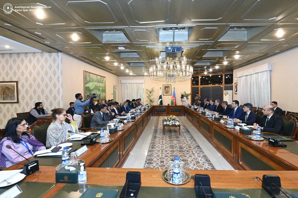 İslamabadda Azərbaycanın xarici işlər naziri Ceyhun Bayramovun pakistanlı həmkarı Məhəmməd İshaq Darla görüşü başlayıb.