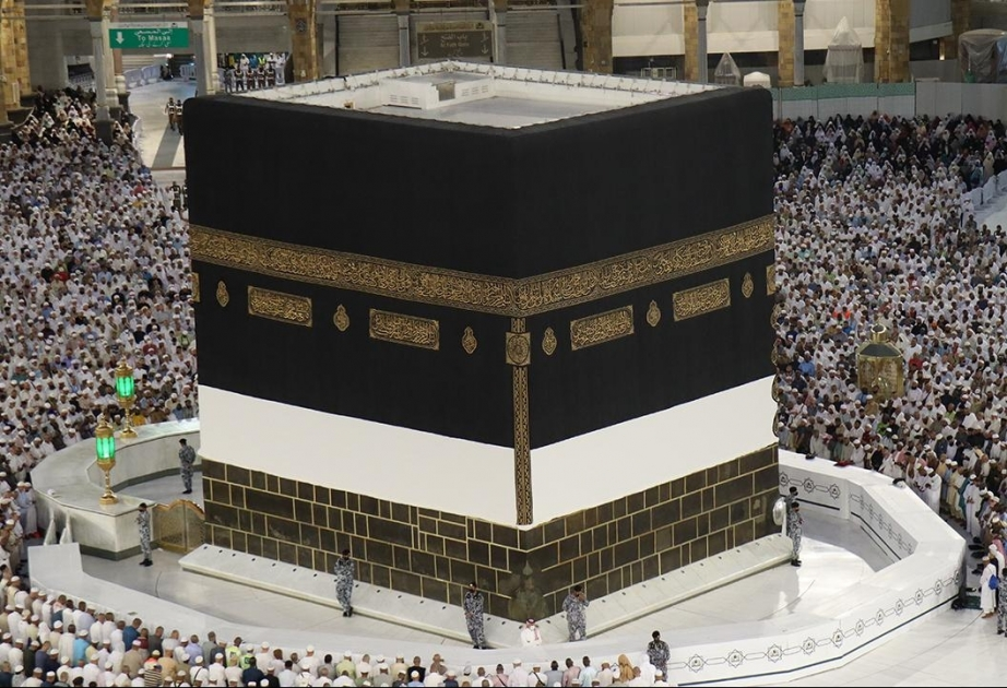 Kəbənin köhnə örtüyü, hər il olduğu kimi, çıxarılaraq yenisi ilə əvəzlənib.