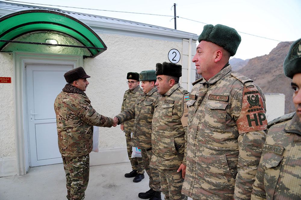 Sonra şəxsi heyətlə görüşən general-leytenant N.Osmanov onların qayğıları ilə maraqlanıb, hərbi qulluqçuları qarşıdan gələn Dünya Azərbaycanlılarının Həmrəyliyi Günü və Yeni il münasibətilə general-polkovnik Zakir Həsənovun adından təbrik edərək xidmətlərində uğurlar arzulayıb və bayram hədiyyələri təqdim edib