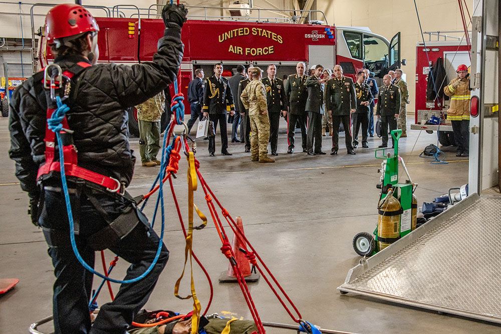 Aviasiya bazası ilə tanışlıq zamanı Azərbaycan nümayəndə heyətinə bazanın yaranma tarixi və əsas fəaliyyət istiqamətlərinə dair brifinq təqdim olunub, habelə aviasiya və qvardiyaya aid bir sıra hərbi vasitələr nümayiş etdirilib.