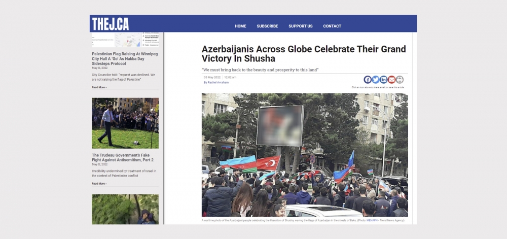 Kanadanın nüfuzlu “Thej.ca” yəhudi media platformasında “Dünya azərbaycanlıları Şuşada böyük qələbəni qeyd edirlər” sərlövhəli məqalə dərc olunub.