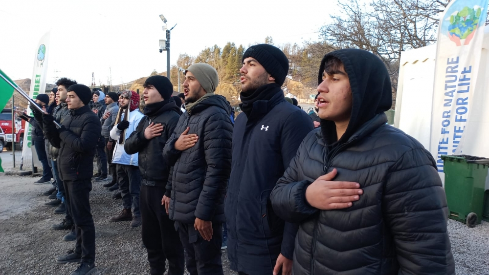 AZƏRTAC-ın aksiya yerinə ezam olunmuş müxbiri xəbər verir ki, ekofəallar hər gün olduğu kimi, bu səhər də Dövlət Himnini səsləndiriblər. Aksiya iştirakçıları yüksək əhvali-ruhiyyədədirlər. Onların məramı əvvəlki kimi dəyişməz olaraq qalır. Etirazçılar Azərbaycan tərəfinin haqlı tələblərinin yerinə yetirilməsini istəyirlər. Fəallar Qarabağ ərazisində Azərbaycanın təbii sərvətlərinin talan edilməsinə qarşı olduqlarını bildirir, haqlı tələblərinin yerinə yetirilməsini istəyirlər. Aksiya iştirakçıları qaldırdıqları plakatlarda üzərində rus və ingilis dilində yazılmış “Sərvətlərimizin talanı dayansın!”, “Təbiəti qoruyaq, istismarı qınayaq!”, “Təbiətin milləti yoxdur!”, “Azərbaycan milləti qoruyacaq sərvəti!”, “Azərbaycan oyaqdır, sərvətinə dayaqdır!”, “Sərvətimiz bölünməz, heç bir kəsə verilməz!”, “Azərbaycan vahiddir, sərvətinə sahibdir!”, “Ekocinayətə son!” kimi şüarlar səsləndirirlər.