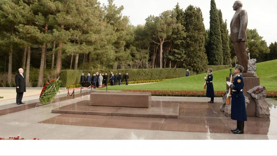 Latviya Prezidenti Ulu Öndərin məzarı önünə əklil qoyub.