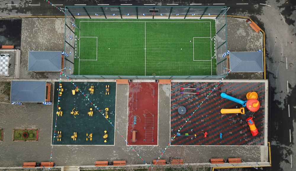 Abadlaşdırılan növbəti həyətdə əlil və sağlamlıq imkanları məhdud insanların rahat hərəkəti nəzərə alınıb, bütün yaş qrupları üzrə uşaqların inkişafı üçün əlverişli şəraitin yaradılması, gənclərin asudə vaxtlarını səmərəli keçirmələri və onlarda sistematik idmanla məşğulolma refleksinin yaradılması məqsədilə ərazidə süni örtüklü minifutbol stadionu, şahmat meydançası, müxtəlif idman qurğuları, uşaq meydançaları salınıb. Eyni zamanda, ərazidə 7 söhbətgah, çoxsaylı oturacaqlar, tullantılar üçün qutular, quş yuvaları və pişik evləri quraşdırılıb.