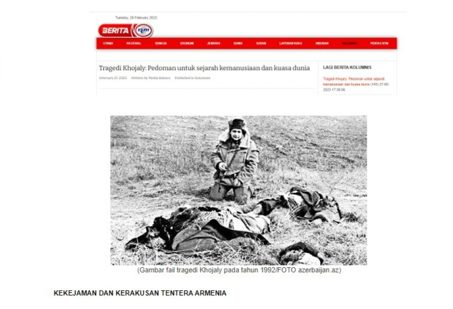 Malayziyanın ali dövlət yayım qurumu olan Radio-Televiziya Departamentinin internet səhifəsində Xocalı soyqırımı barədə geniş məqalə dərc edilib.
