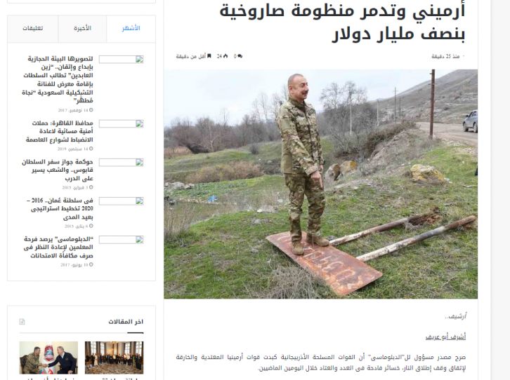 MİSİR MEDİASI: AZƏRBAYCAN ORDUSU ERMƏNİSTAN SİLAHLI QÜVVƏLƏRİNİN TƏXRİBATLARINA QƏTİYYƏTLİ CAVAB VERİB