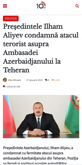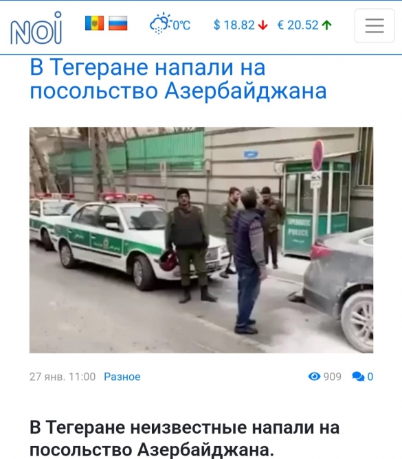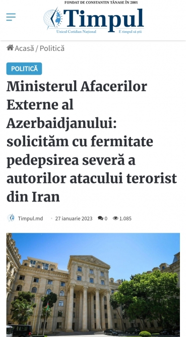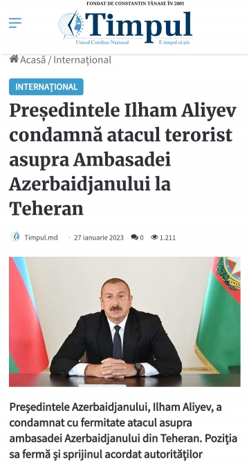 Moldovanın nüfuzlu kütləvi informasiya vasitələri yanvarın 27-də Azərbaycanın İrandakı səfirliyinə edilən silahlı hücumla bağlı məlumatlara geniş yer ayırıb.