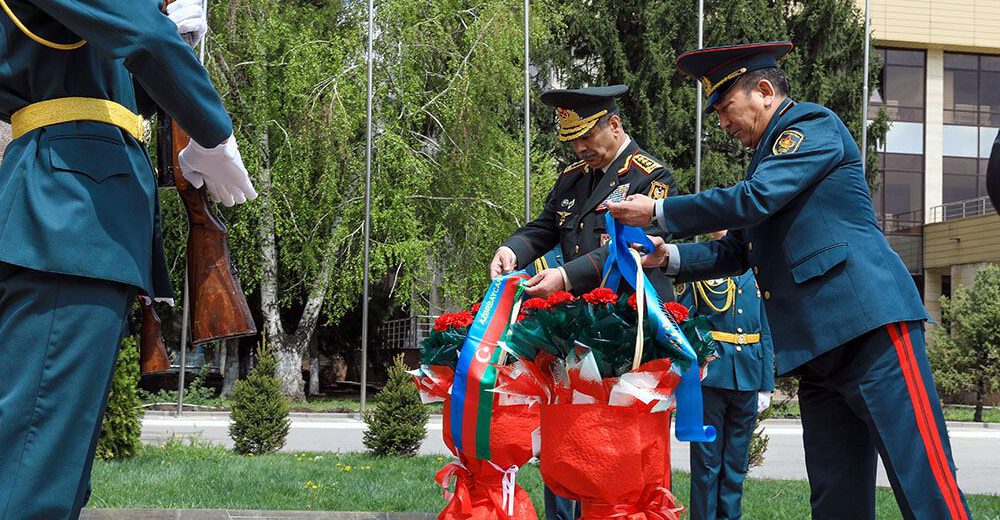 Müdafiə Nazirliyindən bildirilib ki, əvvəlcə Qazaxıstan Respublikasının ilk müdafiə naziri ordu generalı Saqadat Nurmaqambetovun institutun ərazisindəki heykəli önünə əklil qoyaraq, ehtiram nümayiş etdirilib.