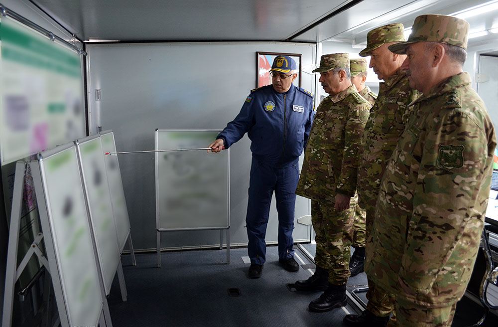 General-polkovnik Z.Həsənov komanda-idarəetmə məntəqəsində HHM bölmələrinin döyüş hazırlığı və döyüşə hazırolma vəziyyəti barədə məruzələri dinləyib.