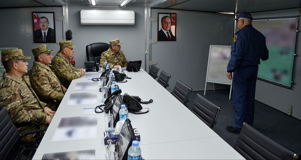 General-polkovnik Z.Həsənov komanda-idarəetmə məntəqəsində HHM bölmələrinin döyüş hazırlığı və döyüşə hazırolma vəziyyəti barədə məruzələri dinləyib.