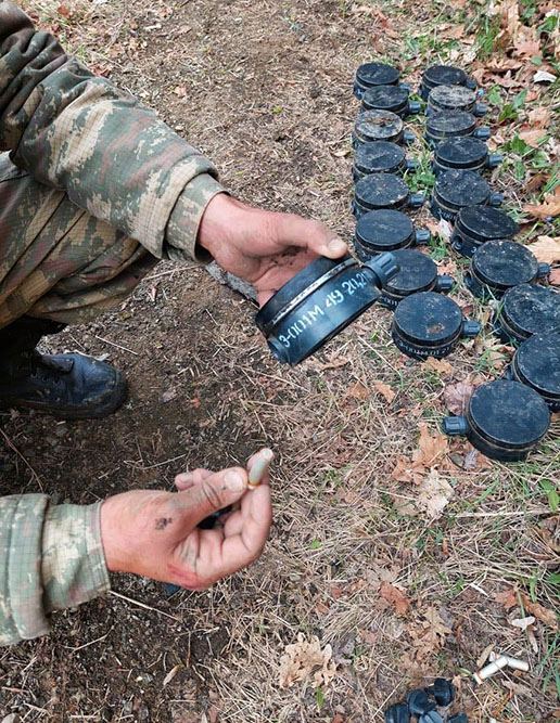 Mühəndis-istehkam bölmələrimiz tərəfindən keçirilən axtarış zamanı həmin ərazidə 2021-ci ildə Ermənistanda istehsal olunmuş bir neçə ədəd tank əleyhinə və xeyli sayda piyada əleyhinə mina aşkar edilib.