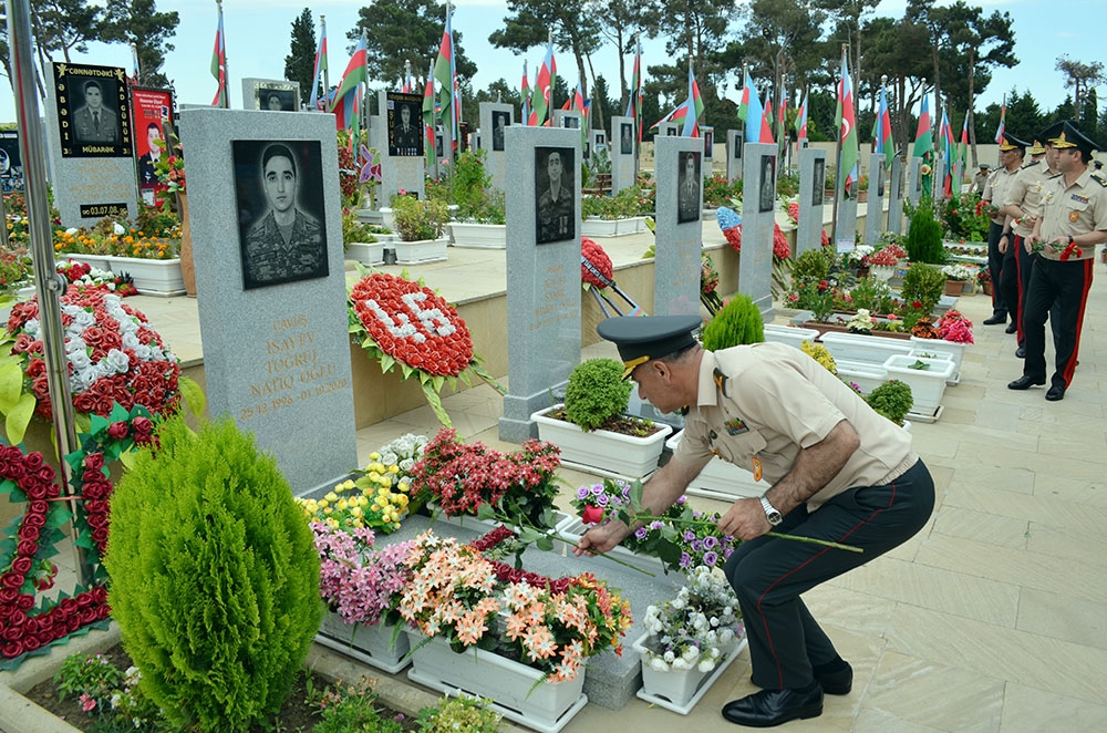 Müdafiə Nazirliyinin mətbuat xidmətindən bildirilib ki, Tovuz döyüşləri zamanı şəhidlik zirvəsinə ucalan Azərbaycanın Milli qəhrəmanları general-mayor Polad Həşimov, polkovnik İlqar Mirzəyev, o cümlədən respublikamızın ərazi bütövlüyünün bərpası, tarixi torpaqlarımızın işğaldan azad edilməsi uğrunda döyüşlərdə şəhidlik zirvəsinə ucalan Vətən övladlarının məzarları üzərinə gül dəstələri düzülüb, xatirələri ehtiramla yad edilib.