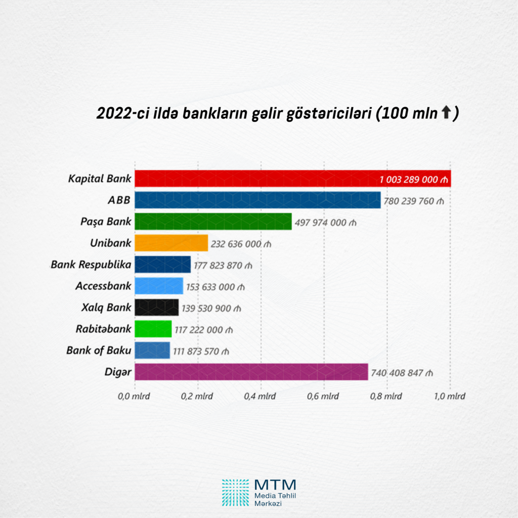 2022-ci ildə bankların gəlir göstəricilərinə diqqət etsək, həmin dövrdə yüz milyon manatdan çox gəlir əldə edən banklar sırasında ilk yeri kəskin fərqlə Kapital Bank tutub.  Belə ki, Kapital Bank 2022-ci ildə 1 003 289 000 manat gəlir əldə etməklə 1 milyardın üzərində gəlir əldə edən yegənə yerli bank olub.