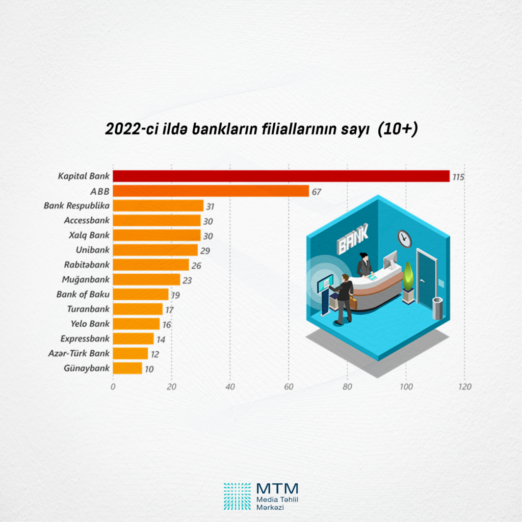 Bir filial sayı ilə AccessBankı qabaqlayan Bank Respublika üçüncü pillədə yer alıb.