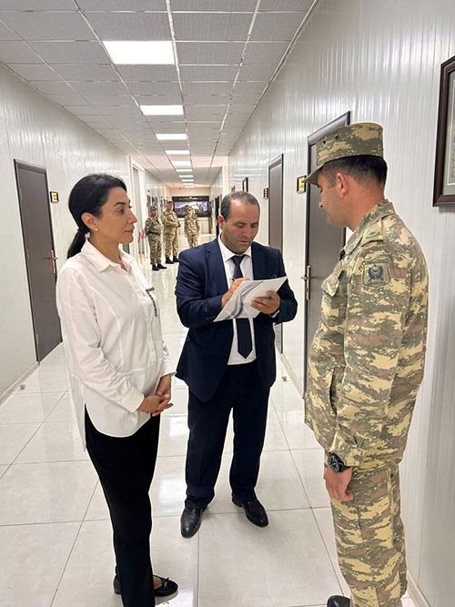 Müdafiə Nazirliyi ilə İnsan Hüquqları üzrə Müvəkkili (Ombudsman) Aparatı arasında 2023-cü il üçün birgə tədbirlər planına əsasən, Ombudsman Səbinə Əliyeva və aparatın nümayəndələri azad edilmiş ərazilərdə dislokasiya olunan hərbi hissələrdən birini ziyarət ediblər.