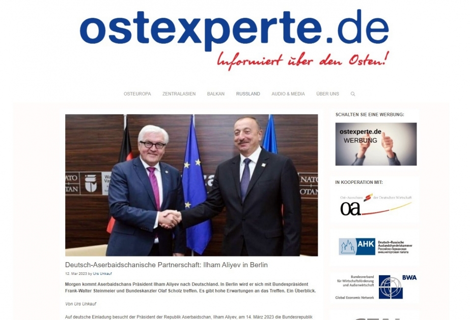 Almaniyanın “ostexperte.de” portalında “Almaniya-Azərbaycan tərəfdaşlığı: İlham Əliyev Berlində” sərlövhəli məqalə dərc olunub.