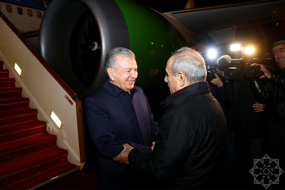 Prezident Şavkat Mirziyoyevi hava limanında Azərbaycan Respublikası Baş nazirinin birinci müavini Yaqub Eyyubov, xarici işlər nazirinin müavini Samir Şərifov və digər rəsmi şəxslər qarşılayıblar.