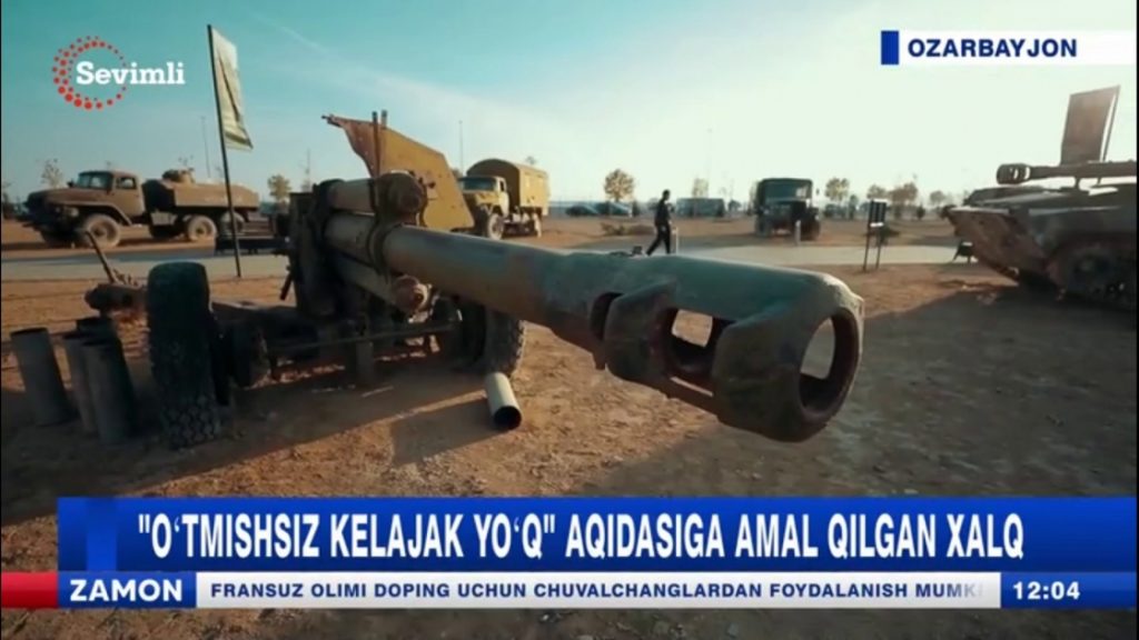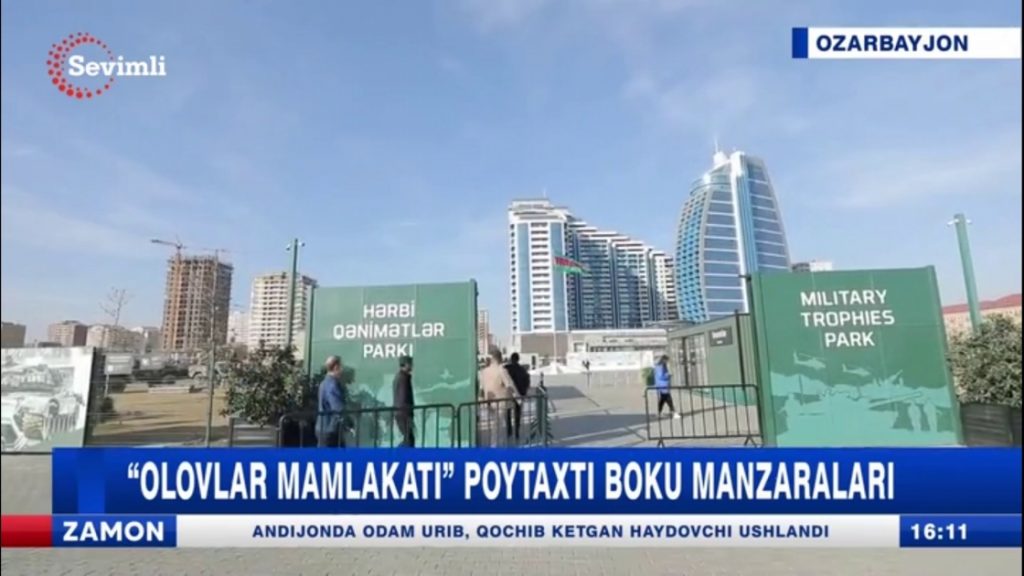 Jurnalist daha sonra çəkilişləri Hərbi Qənimətlər Parkında davam etdirərək, 44 günlük Vətən müharibəsi haqqında məlumat verib. Qeyd olunur ki, burada Azərbaycan xalqının öz ata-baba torpaqlarını erməni işğalından azad edilməsi şərəfinə xatirə park-kompleksi yaradılıb və parkda Vətən müharibəsi nəticəsində düşməndən hərbi qənimət kimi götürülmüş ağır texnika, tanklar, döyüş maşınları, artilleriya qurğuları və s. eksponatlar sərgilənir.