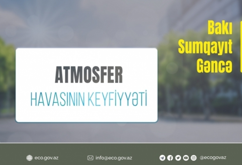 Ekologiya və Təbii Sərvətlər Nazirliyinin mətbuat xidmətindən bildirilib ki, atmosfer havasının keyfiyyətinin monitorinqi gündəlik olaraq Bakı şəhərinin Səbail, Xətai, Nizami, Nərimanov rayonları və Sumqayıt, Gəncə şəhərləri ərazisində hava keyfiyyəti üzrə fasiləsiz fəaliyyət göstərən avtomatik stansiyalar vasitəsilə həyata keçirilir.