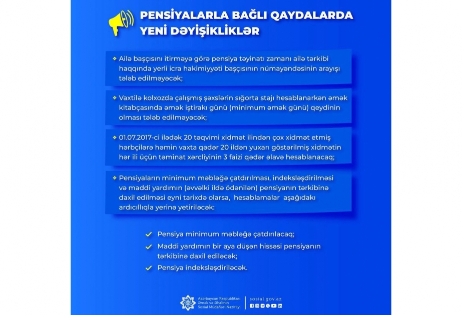 Əmək və Əhalinin Sosial Müdafiəsi Nazirliyindən verilən məlumata görə, yeni dəyişikliklərlə: