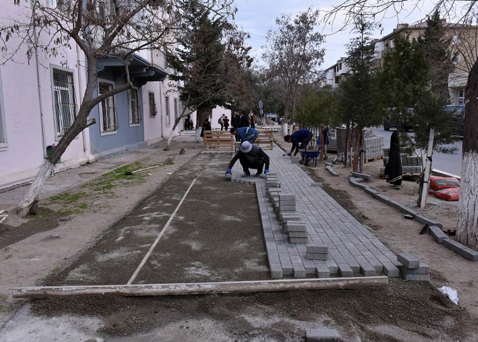 İcra hakimiyyətindən bildirilib ki, abadlıq işləri çərçivəsində küçə boyunca piyada səkilərinə daş döşənir, yaşayış binalarının fasadları yenilənir.