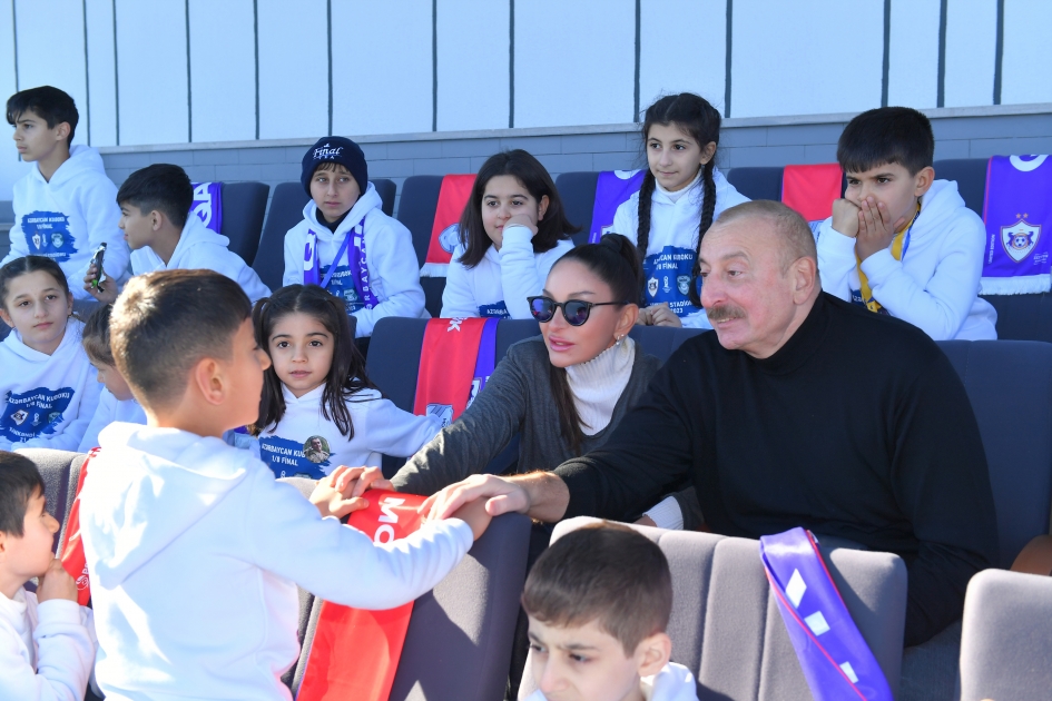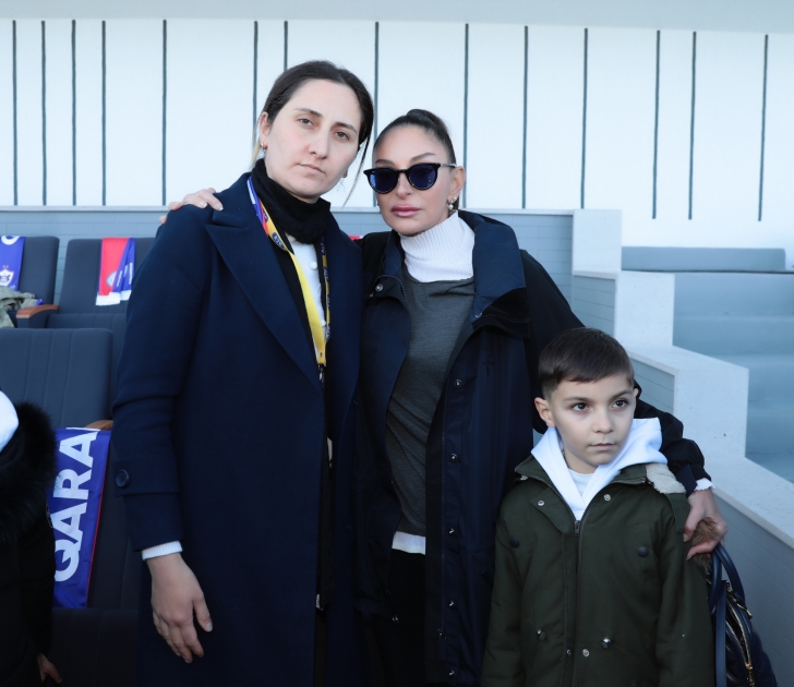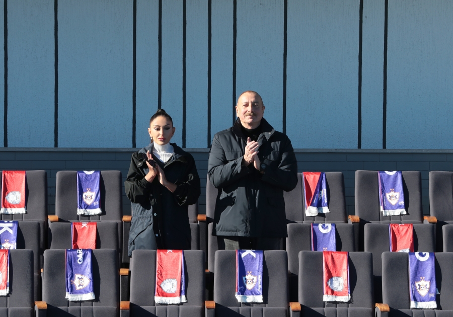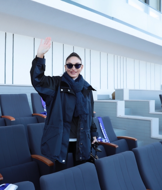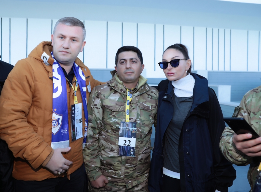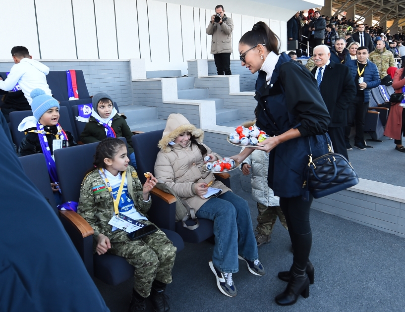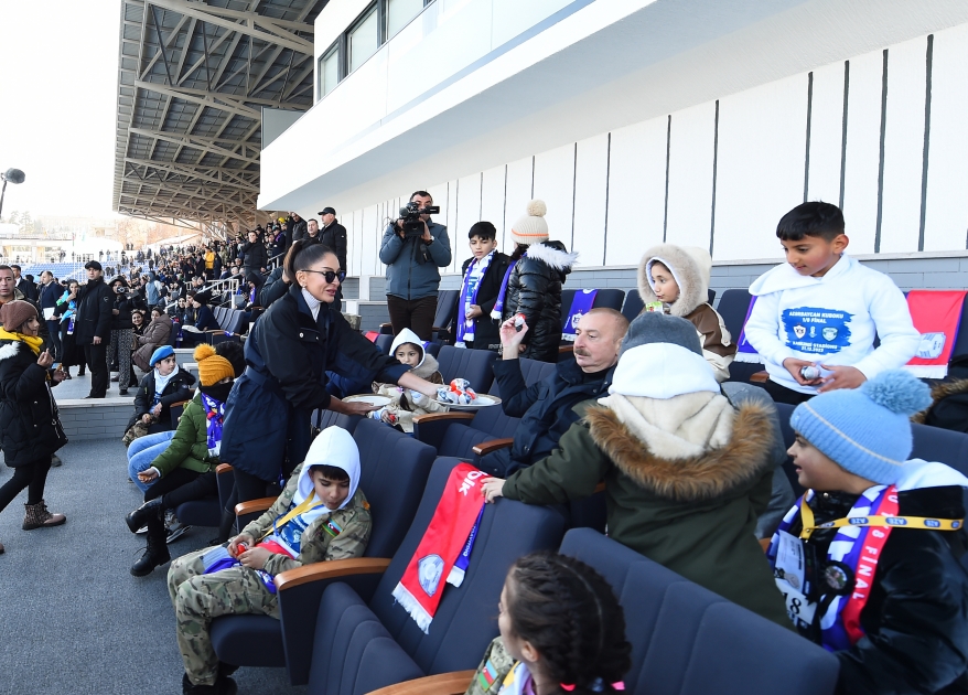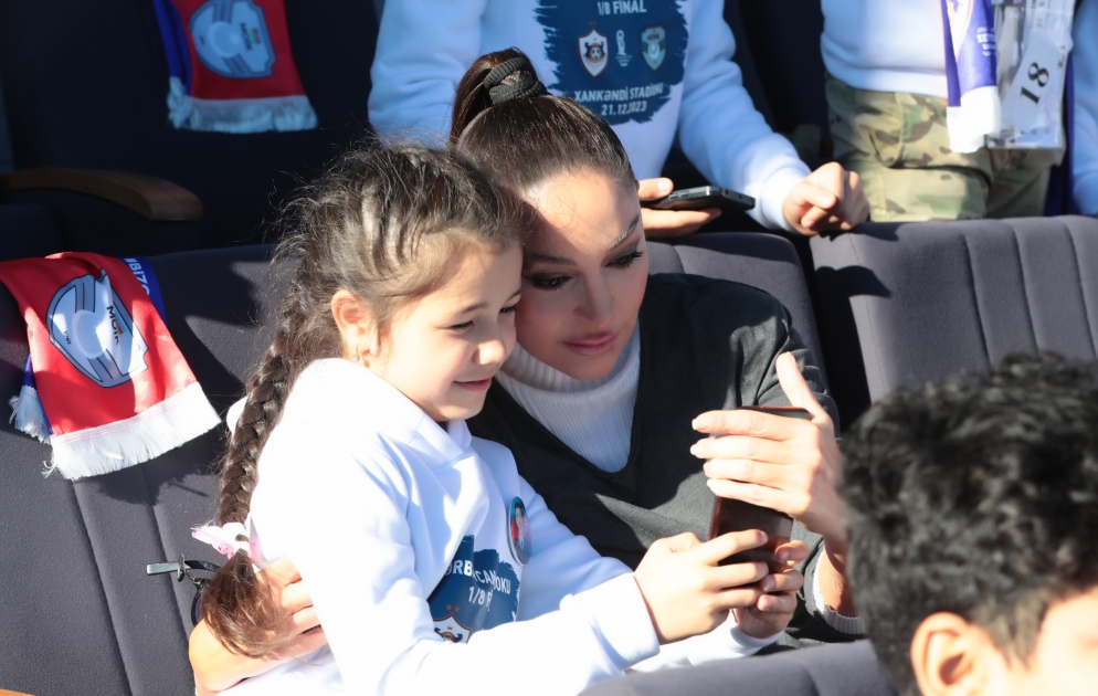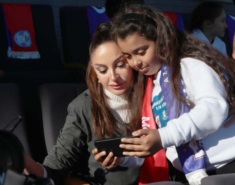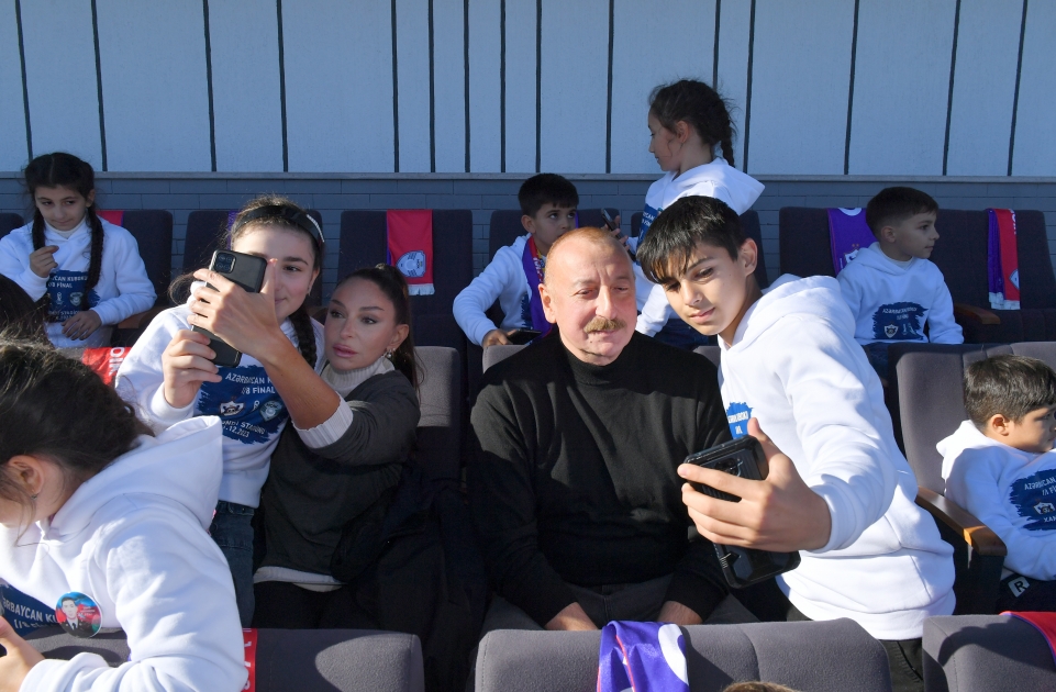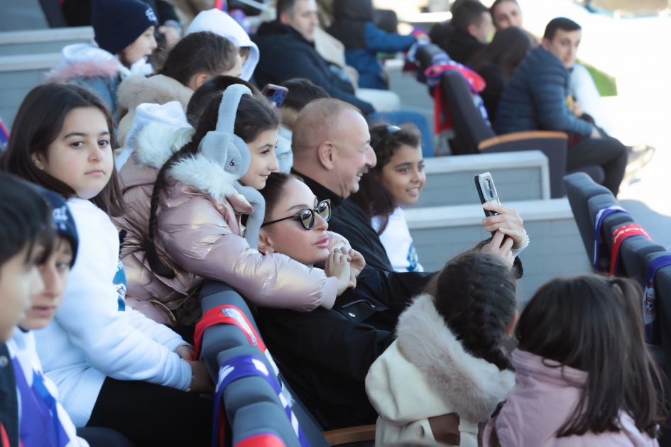 Azərbaycan Respublikasının Prezidenti İlham Əliyev və Birinci xanım Mehriban Əliyeva oyuna baxmaq üçün stadiona gəliblər.