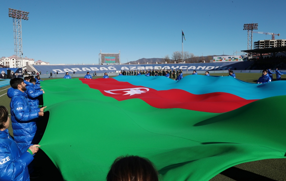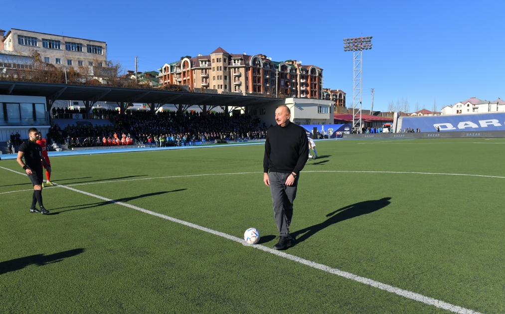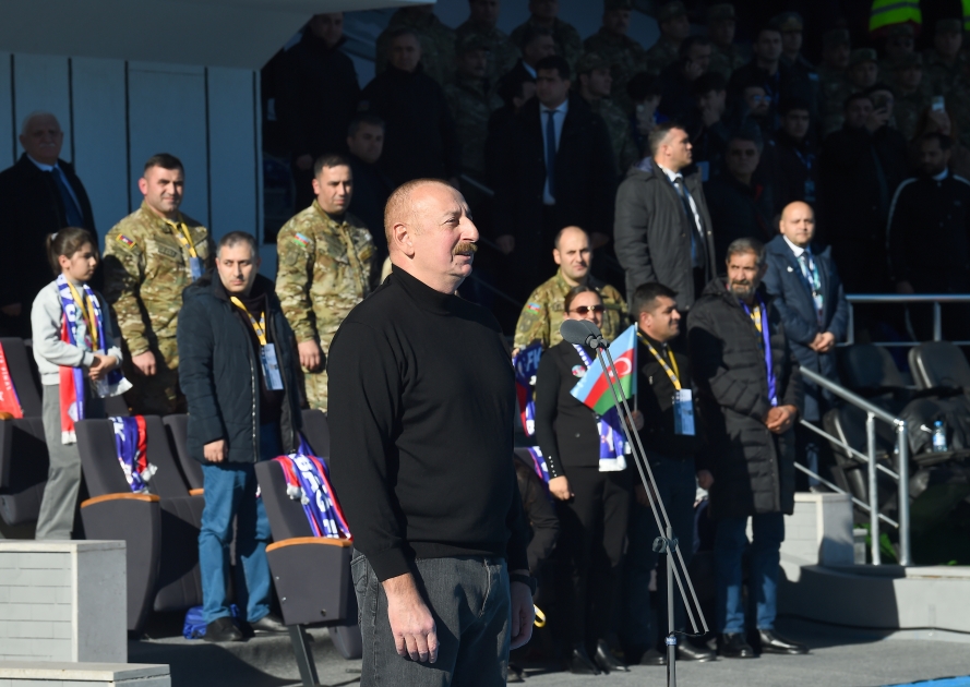 Bu futbol matçının Xankəndidə keçirilməsinin çox böyük mənası var. Xankəndi qədim Azərbaycan diyarıdır. Bu kəndin təməli Qarabağ xanı tərəfindən qoyulmuşdur və ondan sonra Azərbaycan Respublikasının vəsaiti hesabına Azərbaycan memarları, inşaatçıları tərəfindən böyük şəhər yaradılmışdır. Əfsuslar olsun ki, 30 il ərzində bu şəhərdə separatçılar yuva salmışdılar. Bu şəhər separatizmin rəmzinə çevrilmişdi. Torpaqlarımızı 30 il ərzində işğal altında saxlayan Ermənistan hesab edirdi ki, bunu əbədi edə biləcək. Biz, şanlı Azərbaycan Ordusu onlara və bütün dünyaya sübut etdik ki, bu, bizim tarixi, əzəli torpağımızdır. Bu torpaqların sahibləri bizik, Azərbaycan xalqıdır. Biz buraya qayıtmalı idik və qayıtmışıq.