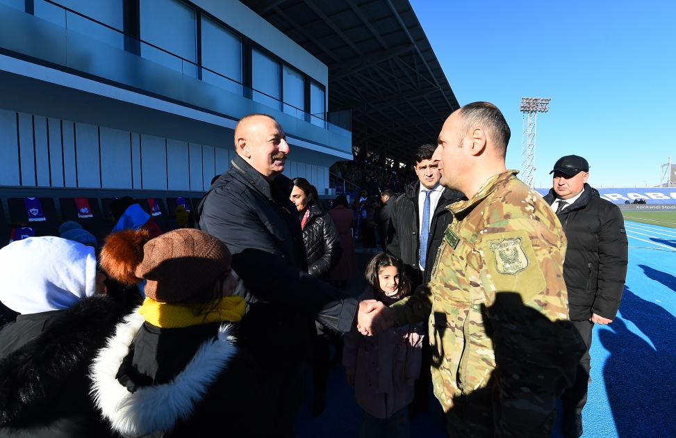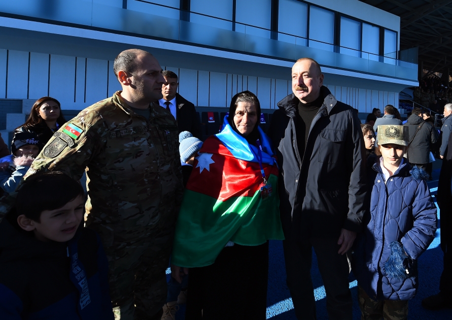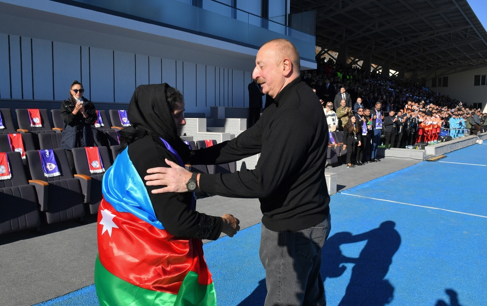 İşğal edilmiş torpaqların böyük hissəsi üç il bundan əvvəl – İkinci Qarabağ müharibəsi nəticəsində işğalçılardan azad edildi. Qarabağın tacı olan Şuşa şəhərində Azərbaycan Bayrağı qaldırıldı. Üç ay bundan əvvəl – sentyabrın 19-20-də Xankəndi, Xocalı, Əsgəran, Xocavənd, Ağdərə rayonları da işğalçılardan azad edildi. Oktyabrın 15-də bütün bu şəhərlərdə mən Azərbaycan Bayrağını ucaltdım. Noyabrın 8-də Xankəndinin mərkəzi meydanında Zəfər paradı keçirildi. Bu gün isə bu gözəl idman bayramını biz birlikdə qeyd edirik.