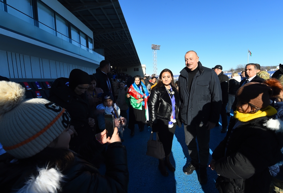 Dövlətimizin başçısı oyundan əvvəl stadionda çıxış edib.