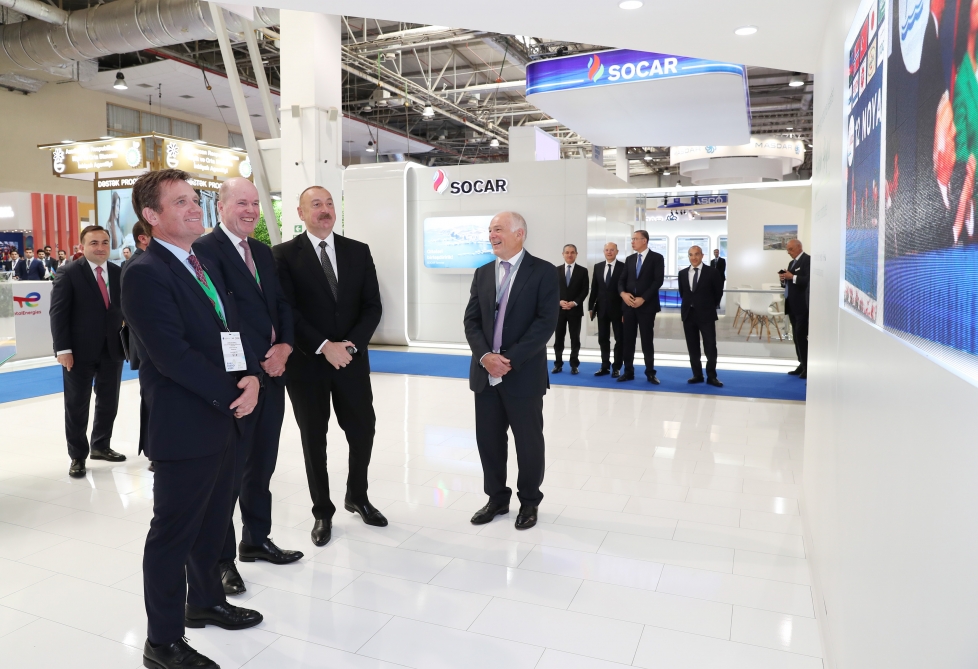 Prezident İlham Əliyev BP-Azərbaycanın stendinə də baxıb. BP şirkəti 30 ildən çoxdur ki, Azərbaycanda fəaliyyət göstərir və 5 böyük enerji layihəsinin operatorluğunu təhlükəsiz və etibarlı şəkildə həyata keçirir. Bu günədək BP öz tərəfdaşları ilə birlikdə ölkəmizdəki layihələrə təxminən 84 milyard dollar sərmayə qoyub. Şirkət on minlərlə iş yeri yaratmaqla və genişmiqyaslı sosial sərmayə fəaliyyətləri həyata keçirməklə yerli icmalara müsbət təsir göstərib.
