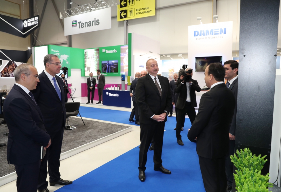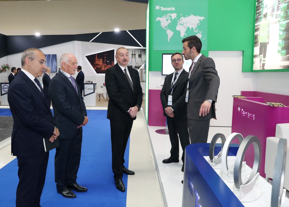 Dövlətimizin başçısı İtaliyanın “Tenaris” şirkətinin stendində olub. Bildirilib ki, şirkət qlobal enerji sənayesində və digər tətbiq sahələrində istifadə olunan boru və əlaqədar xidmətlərin aparıcı təchizatçısıdır. Şirkətin məqsədi məhsulun işlənib hazırlanması, istehsal mükəmməlliyi və tədarük proseslərinin idarə edilməsi vasitəsi ilə müştərilərin biznesinə dəyər verməkdir.
