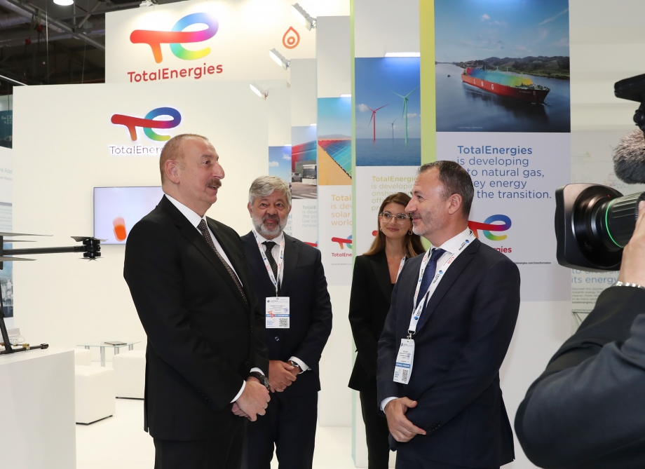 Dövlətimizin başçısı Fransanın TOTAL şirkətinin stendinə də baxıb. TOTAL 1996-cı ildən Azərbaycanda fəaliyyət göstərir və enerji sektorunda fəal iştirak edir. Şirkət insanların rifahının yüksəldilməsi üçün dayanıqlı inkişafı bütün aspektlərdə öz strategiyasının, layihələrinin və əməliyyatlarının əsası hesab edir və Birləşmiş Millətlər Təşkilatının Dayanıqlı İnkişaf Məqsədlərinin dəstəklənməsində meyar olmağa çalışır.