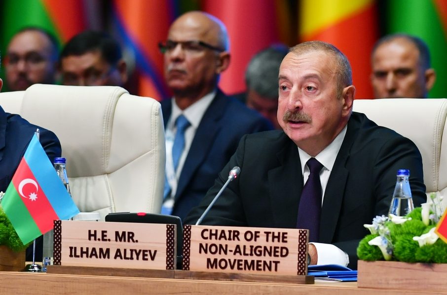İşğal zamanı və işğaldan sonra Azərbaycanın ədalətli mövqeyini dəstəkləməkdə göstərdikləri prinsipial mövqeyə görə Qoşulmama Hərəkatı ölkələrinə dərin minnətdarlığını bildirdən dövlətimizin başçısı qeyd edib ki, o, xüsusilə 2020-ci və 2022-ci illərdə Qoşulmama Hərəkatı ölkələrinin BMT Təhlükəsizlik Şurasında Azərbaycan əleyhinə olan birtərəfli və qərəzli bəyanatların qəbul edilməsinin qarşısını aldıqları iki hala istinad edir.