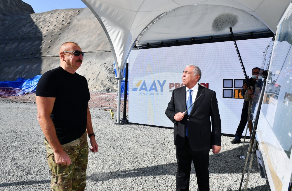 Bu gün Murov dağından buraya gələrkən, bu gözəl dağlara baxarkən bir daha görürəm ki, bizim Vətənimiz nə qədər gözəldir. Murov dağından, bax, Laçın şəhərinə qədər 12 tunel tikilir, təsəvvür edin, təkcə bu istiqamətdə. Mən hələ Füzuli-Şuşa istiqamətini, digər istiqamətləri, Horadiz-Ağbənd istiqamətini demirəm. Ancaq Murov dağından Laçın şəhərinə qədər 12 tunel tikilir. Bu tunellərin ümumi uzunluğu 17,5 kilometrdir. Onların içində ən böyüyü – Murovdağ tuneli 12 kilometr uzunluğundadır. Yəni, mən indi bir neçə saat yol gəlmişəm. Amma gün gələcək, – o gün uzaqda deyil, iki ilə, maksimum iki il yarıma, – çox rahatlıqla Göygöldən Murov dağının altı ilə insanlar gəlib burada quracaqlar, yaşayacaqlar. Eyni zamanda, Qubadlı-Laçın avtomobil yolunun inşası ilə bağlı göstəriş verilibdir. Biz Horadiz-Zəngilan-Qubadlı avtomobil yolunun inşası ilə məşğuluq. Göstəriş vermişəm, Qubadlı-Laçın avtomobil yolu da dördzolaqlı inşa ediləcək. Yəni, bu yol əsasdır.