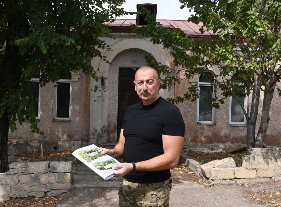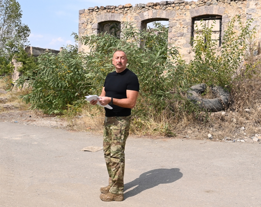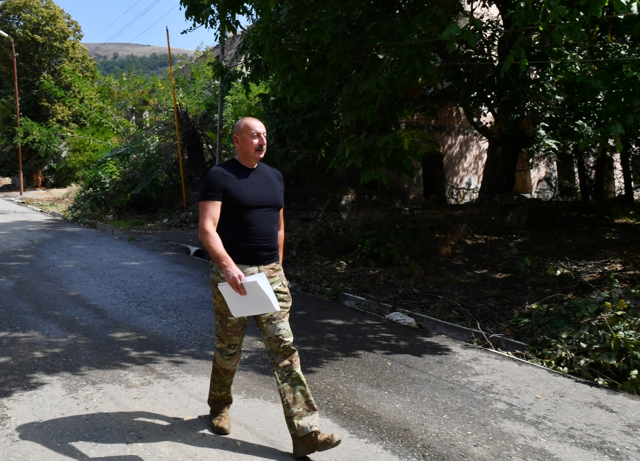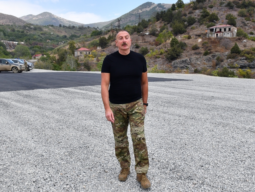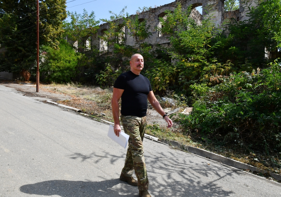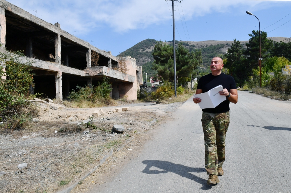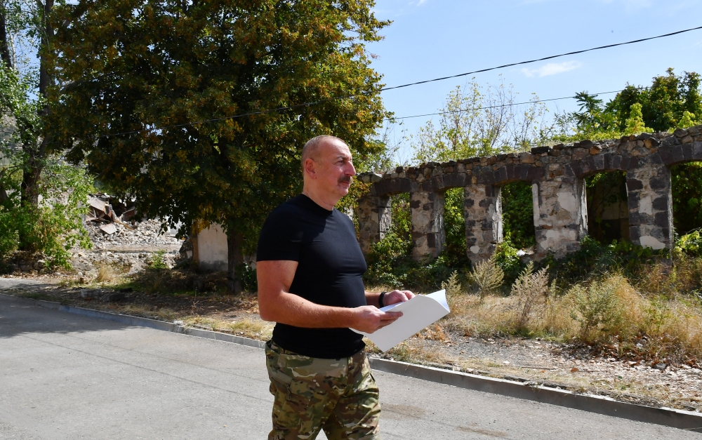 Daha sonra dövlətimizin başçısı Laçın şəhərinin mərkəzi küçəsində ermənilərin törətdikləri dağıntılara baxıb, şəhərin ərazisini seyr edib.