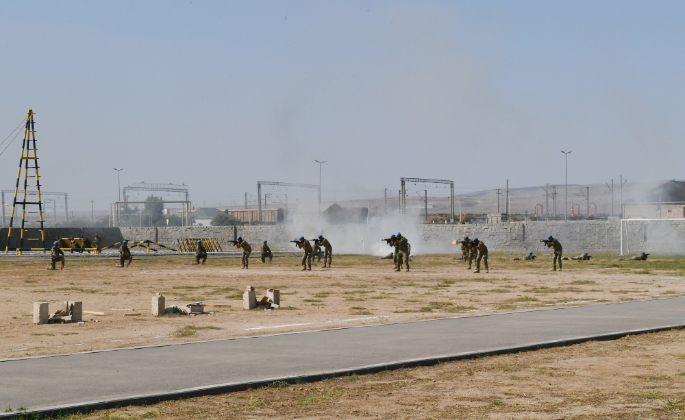 Sonra Prezident İlham Əliyev şəxsi heyətin atış vərdişlərini təkmilləşdirməsi üçün təyin olunmuş qapalı atış şəhərciyinə baxıb. Məruzə olunub ki, burada tapança, pnevmatik silah və kiçikçaplı tüfənglərdən atəş açmaq üçün nəzərdə tutulmuş 25 metr uzunluğunda iki atış zolağı, həmçinin atışın nəticələri əks olunan monitor mövcuddur.
