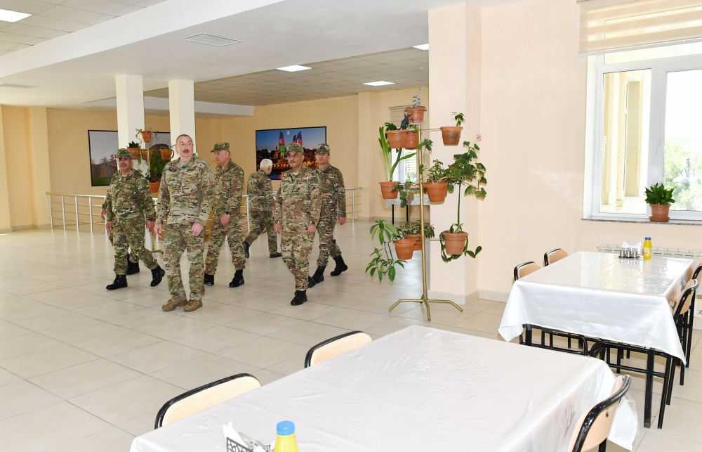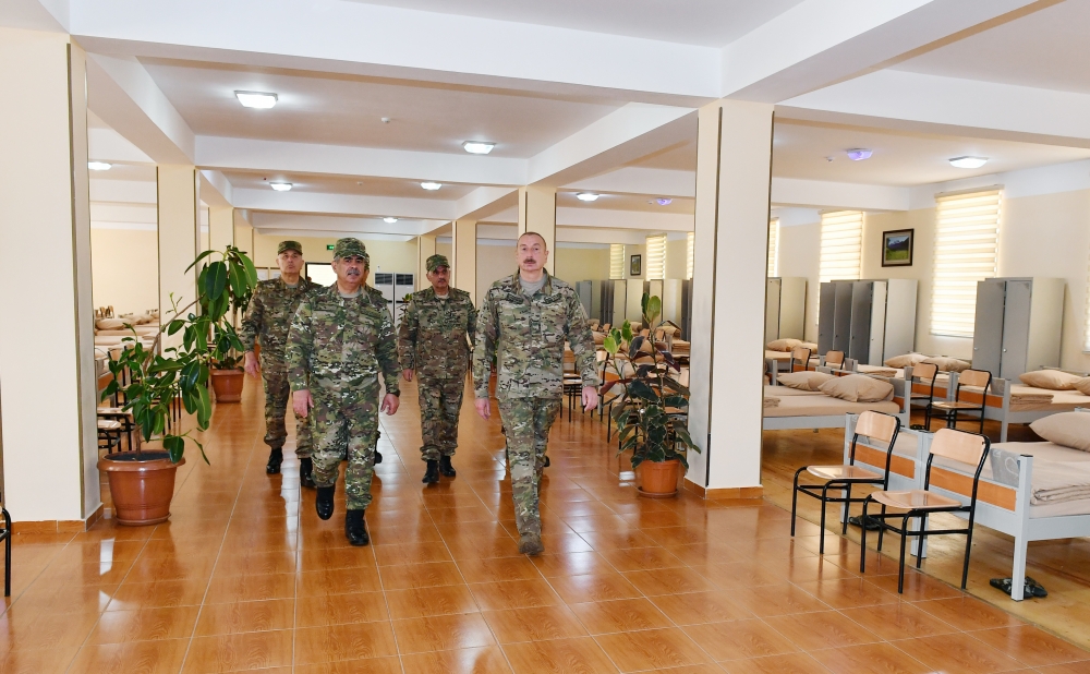 Sonra Ali Baş Komandan əsgər yataqxanasında yaradılan şəraitlə tanış olub, oradakı silah otağı, əşya anbarı, şəxsi heyətin mənəvi-psixoloji hazırlığı üçün ideoloji iş və digər inzibati otaqlara baxıb. Silah otağında Prezident İlham Əliyevə əksəriyyəti Azərbaycan istehsalı olan silah nümunələrinin taktiki-texniki xüsusiyyətləri barədə məlumat verilib.