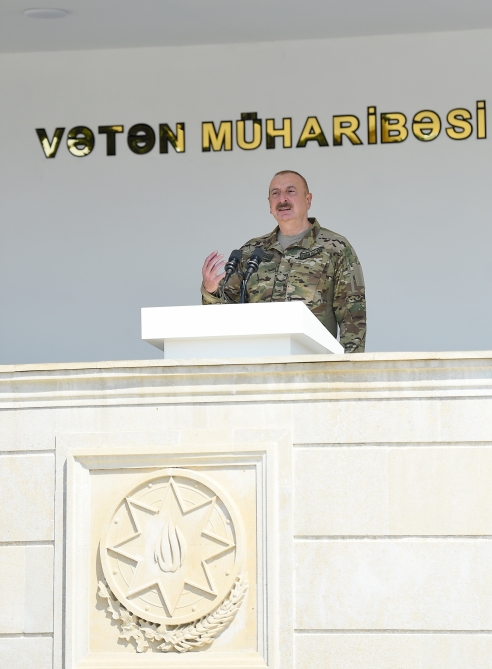 Bu gün Qarabağda və Şərqi Zəngəzurda genişmiqyaslı quruculuq işləri aparılır. Keçmiş məcburi köçkünlər öz dədə-baba torpaqlarına qaytarılır. Onlarla görüşlər əsnasında mən demişdim ki, siz öz torpaqlarınıza qayıdacaqsınız, belə də oldu. Demişdim, biz heç vaxt imkan vermərik ki, ərazimizdə ikinci erməni dövləti yaradılsın, belə də oldu. Biz demişdik ki, düşməni torpaqlarımızdan qovacağıq, düşməni torpaqlarımızdan qovduq, Azərbaycan Bayrağını bizim tarixi torpaqlarımızda qaldırdıq. Yəni, bu, böyük tarixi nailiyyətdir. Bu şanlı tarix Azərbaycan xalqının qəlbində əbədi yaşayacaqdır.