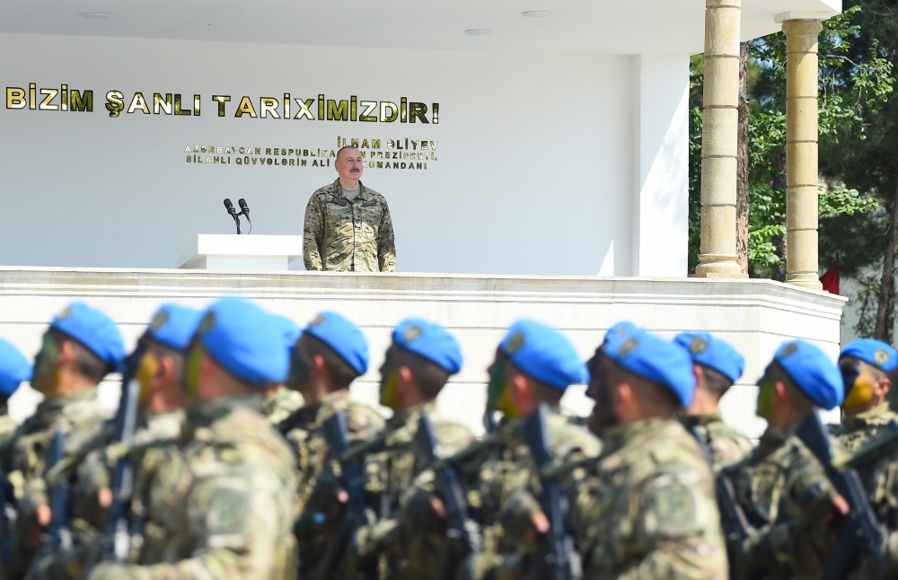 Əziz hərbçilər, bildiyiniz kimi, Azərbaycan xalqı bu il Ulu Öndər Heydər Əliyevin 100 illiyini qeyd edir. Ulu Öndərin Azərbaycan Ordusunun formalaşmasında xüsusi rolu vardır. Hələ sovet dövründə Naxçıvanski adına hərbi məktəbin yaradılması məhz bu məqsədi güdürdü ki, Azərbaycanda peşəkar zabit təbəqəsi yaransın.