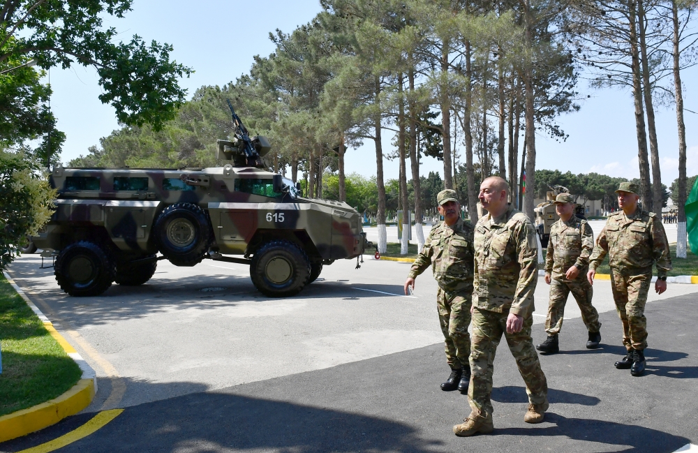Sonra dövlətimizin başçısı hərbi hissənin sıra meydanına gəlib.