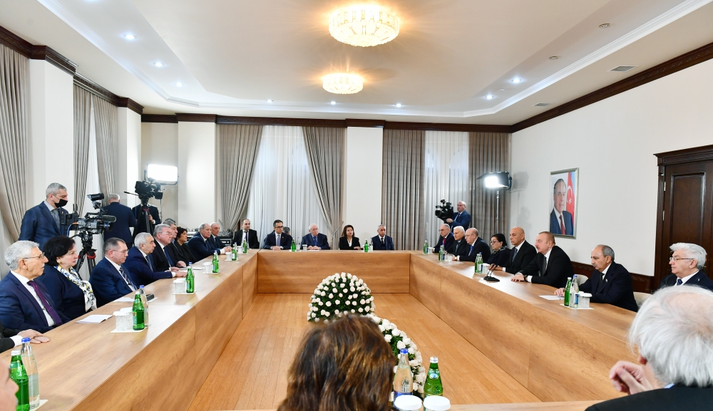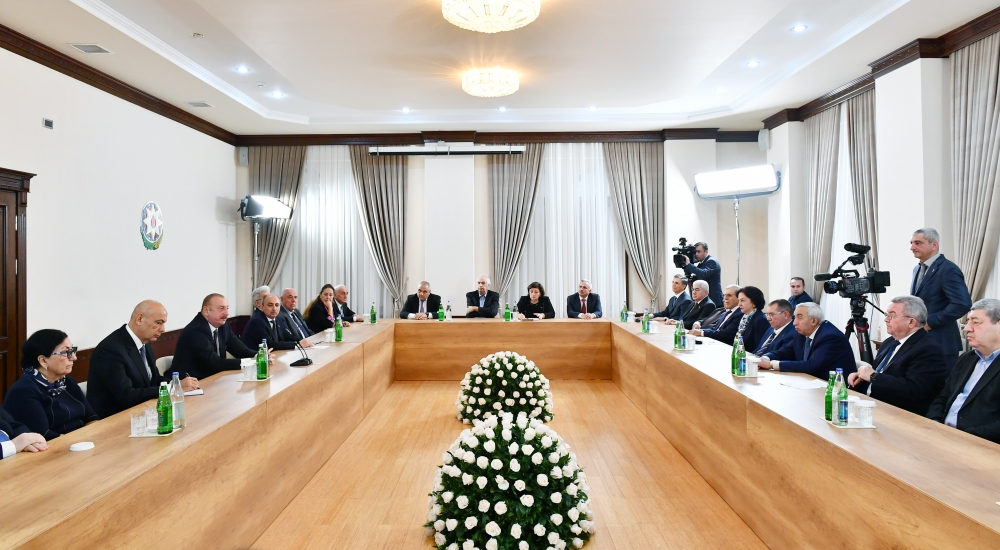 Sonra Prezident İlham Əliyev Qərbi Azərbaycandan olan bir qrup ziyalı ilə görüşüb.