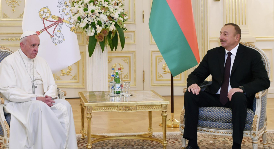 Azərbaycan ilə Müqəddəs Taxt-Tac arasında formalaşmış münasibətlər bizi sevindirir. İkitərəfli əlaqələrimizin tarixi çoxsaylı qarşılıqlı səfərlər, daimi təmaslar və əlamətdar hadisələrlə zəngindir. Məmnunluqla qeyd etmək istərdim ki, ölkəmizdə sayca ikinci olacaq və Papa II İohann Pavelin şərəfinə ucaldılacaq yeni katolik kilsəsi ölkəmizdə katolik dini icmasına göstərilən böyük diqqət və qayğının təzahürü, Azərbaycan ilə Müqəddəs Taxt-Tac arasında yüksək səviyyəli əlaqələrin yeni rəmzidir.