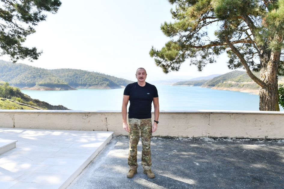 Sonra dövlətimizin başçısı su anbarının ərazisinə baxıb.