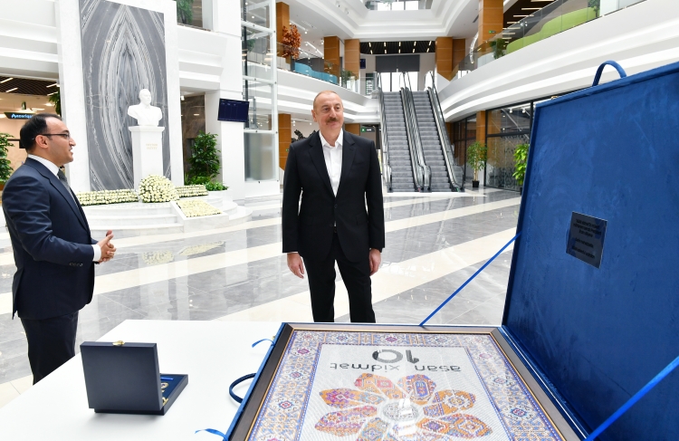 Sonra Prezident İlham Əliyevə “Azərbaycan Respublikasının Prezidenti yanında Vətəndaşlara Xidmət və Sosial İnnovasiyalar üzrə Dövlət Agentliyinin 10 illiyi (2012-2022)” Azərbaycan Respublikasının ilk yubiley medalı, həmçinin “ASAN xidmət” kollektivi adından qurumun 10 illiyinə həsr olunmuş və ABAD tərəfindən hazırlanmış xatirə hədiyyəsi təqdim olunub.