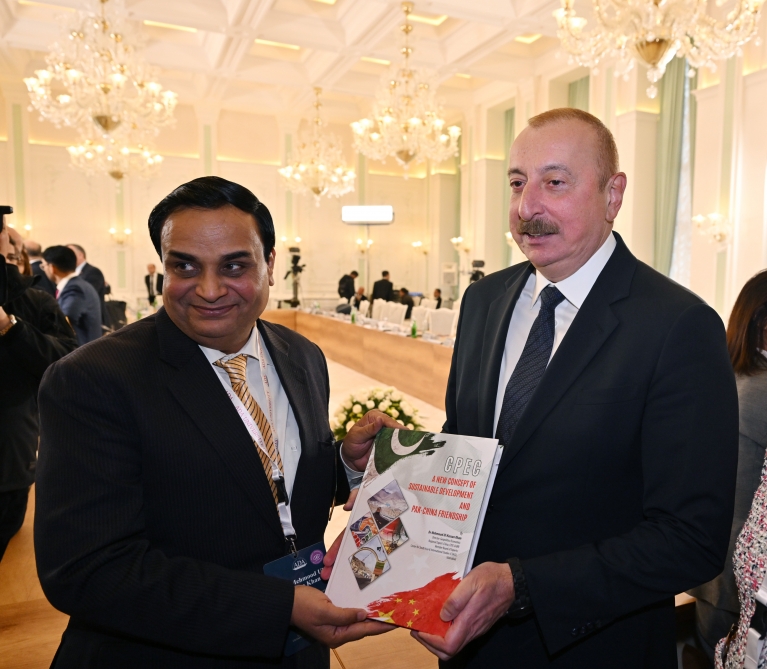 Mahmud Həsən xan: Bizim Sizə və Azərbaycan xalqına xüsusi bağlılığımız, hörmət və ehtiramımız var. Biz həqiqətən Azərbaycanın tam sosial-iqtisadi transformasiyası və Qarabağın uğurla azad edilməsi ilə bağlı strateji düşüncələrinizi yüksək dəyərləndiririk. Geosiyasətə aid bir çox sualların verildiyini nəzərə alaraq, mənim sualım geoiqtisadiyyatla bağlıdır.