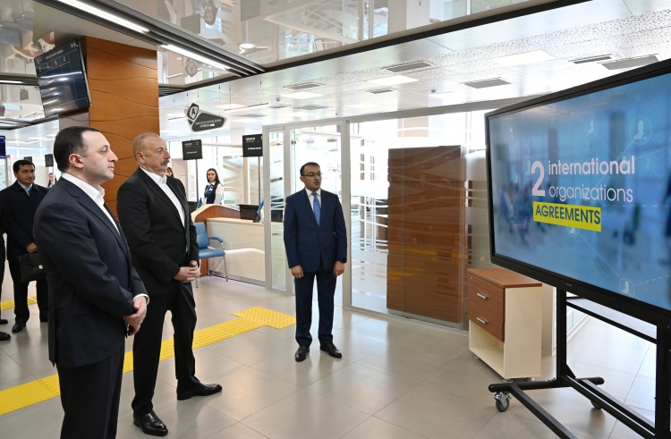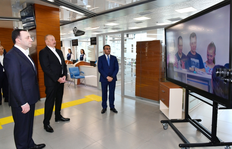 PREZİDENT İLHAM ƏLİYEV VƏ BAŞ NAZİR İRAKLİ QARİBAŞVİLİ QƏBƏLƏ REGİONAL “ASAN XİDMƏT“ MƏRKƏZİNDƏ OLUBLAR